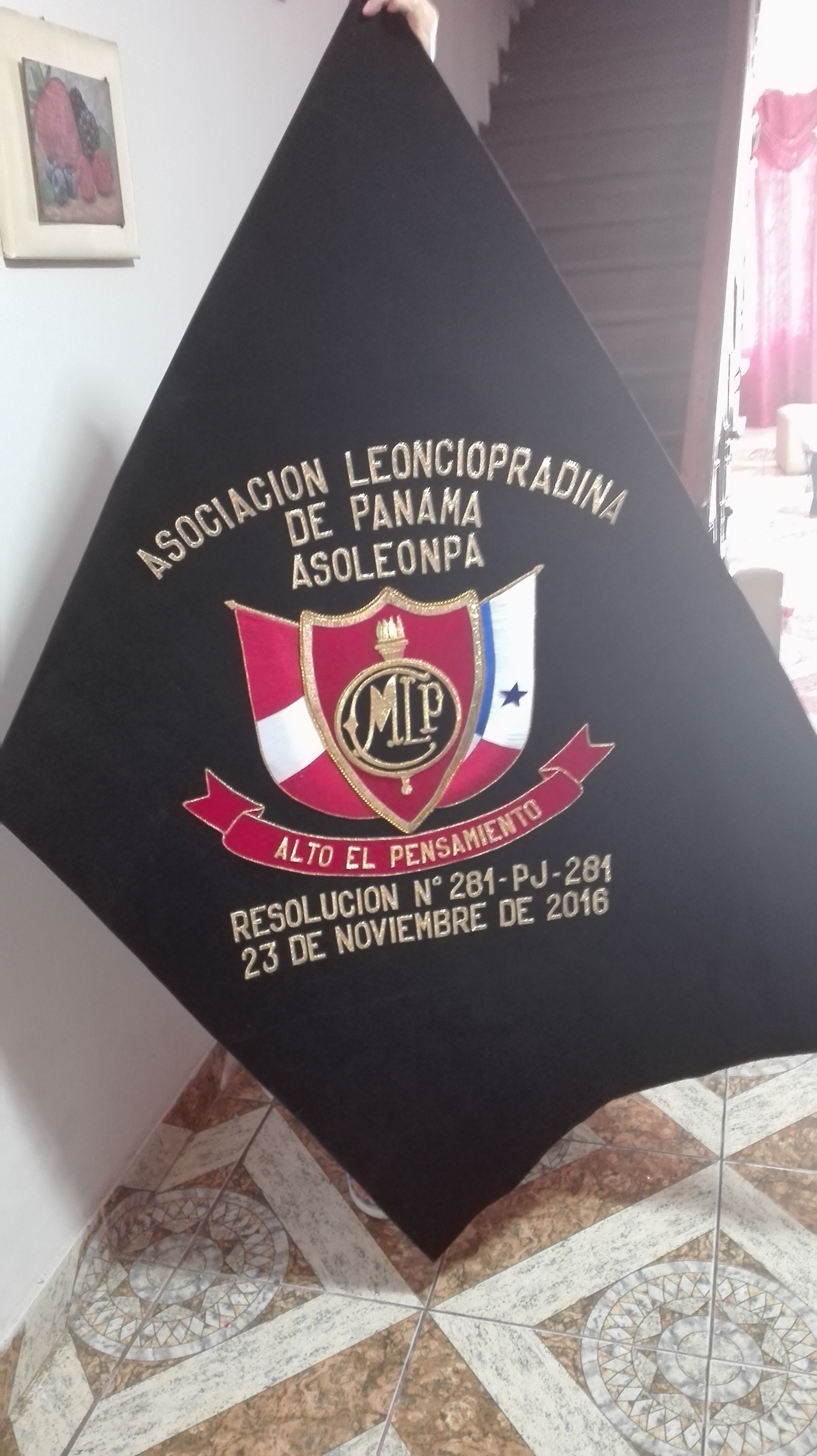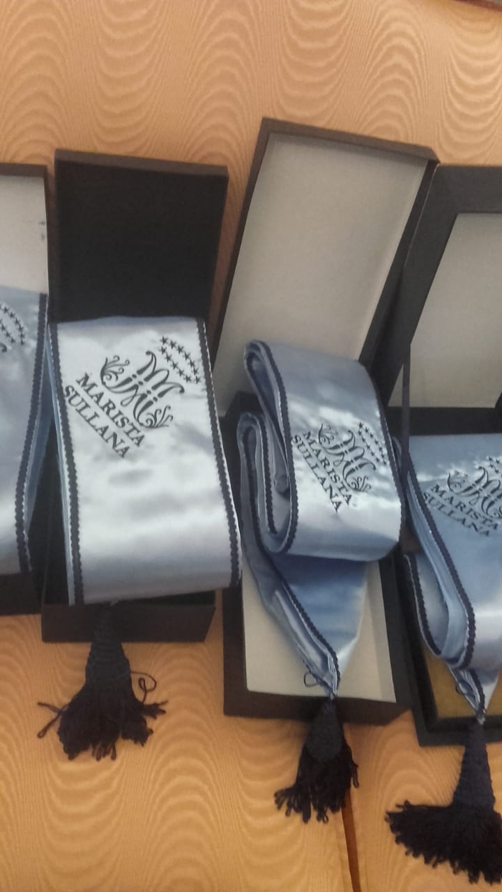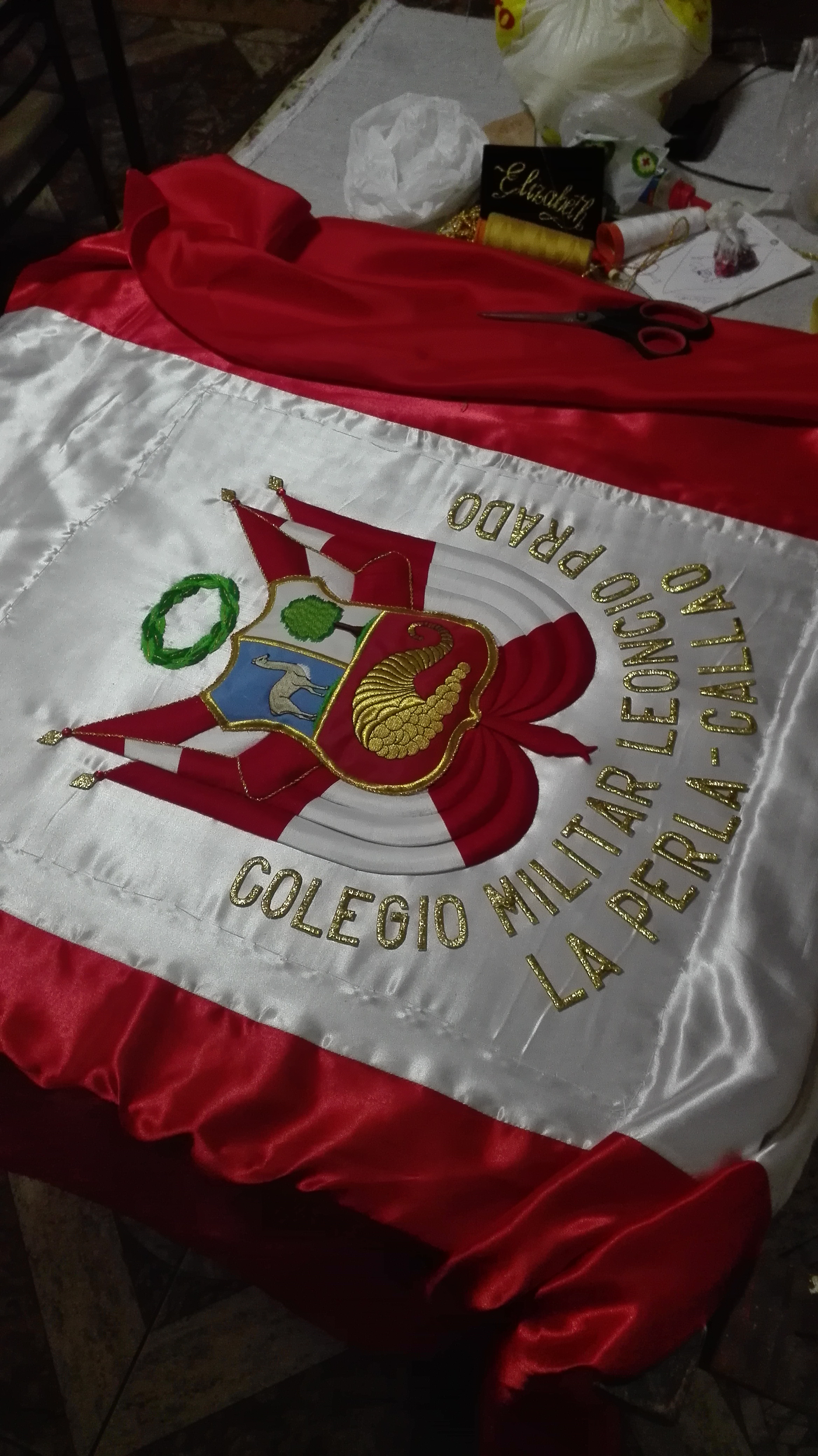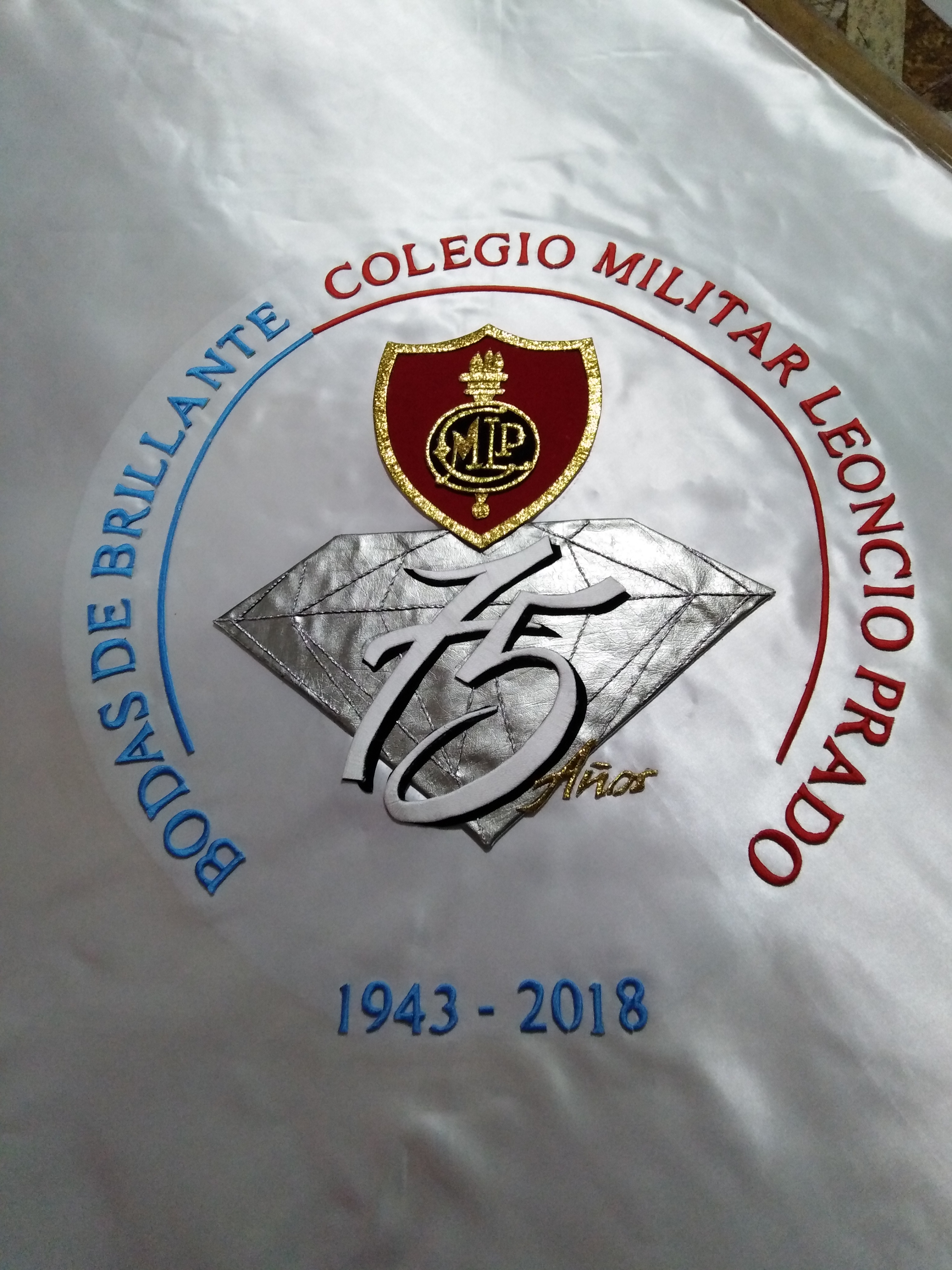 Bordada en raso francés según modelo (colegio maristas ex alumnos)